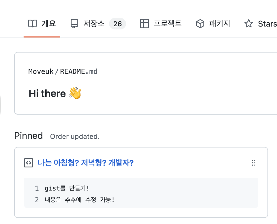 5. gist를 프로필에 고정해준다!