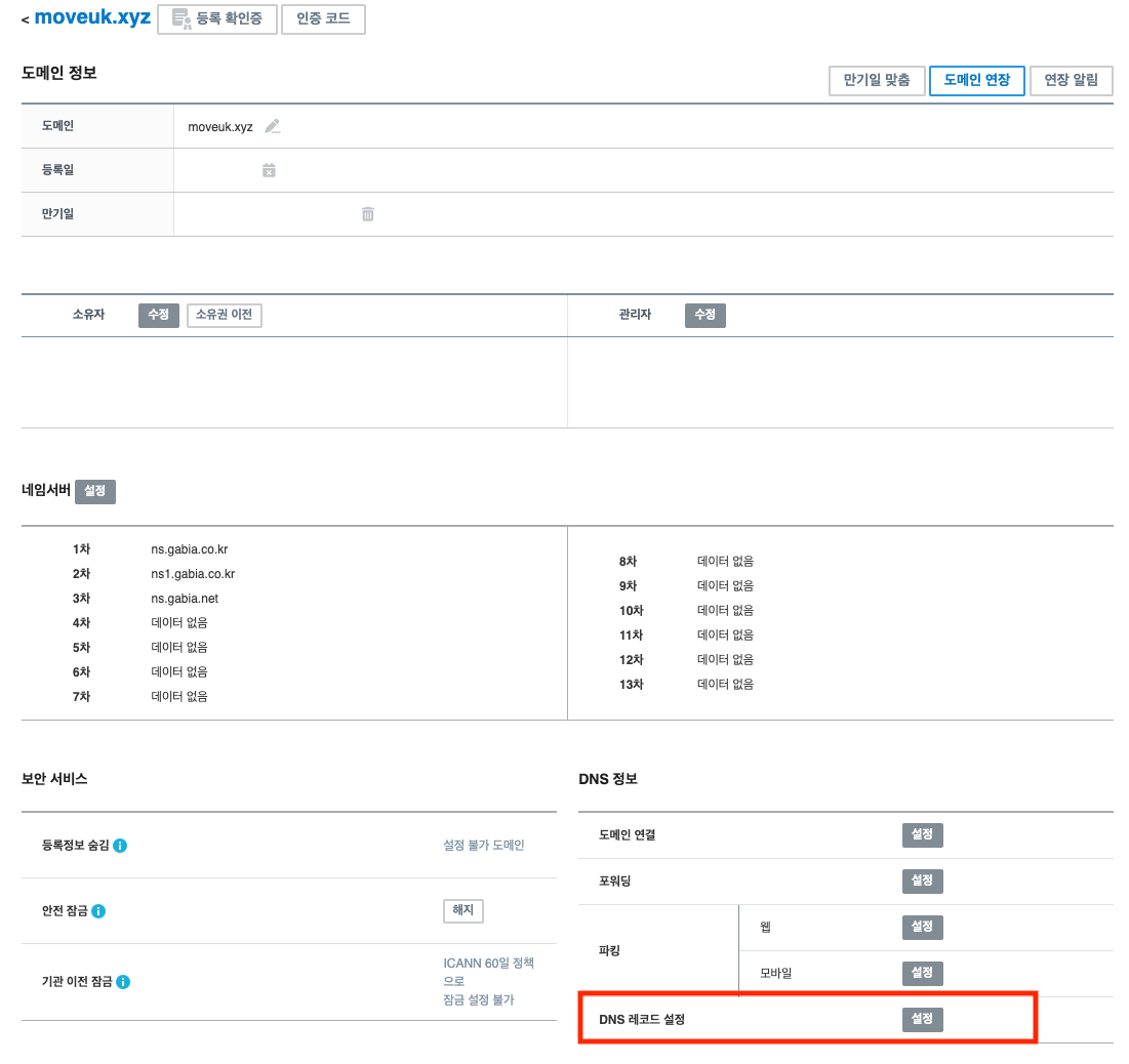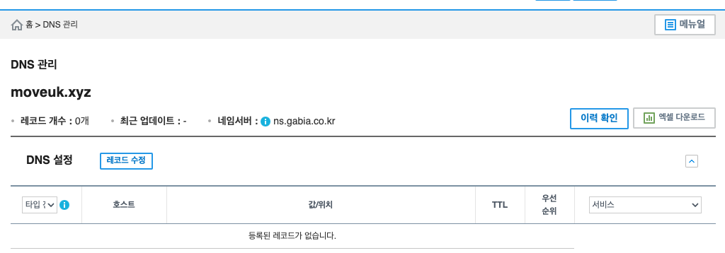 도메인에 레코드 설정하기 <- 우리 도메인을 사용할 수 있도록 만들어주는 설정