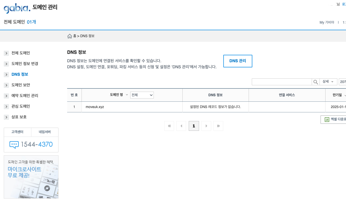 먼저, 가비의 도메인 관리 툴로 이동하여 도메인을 클릭해준다.
