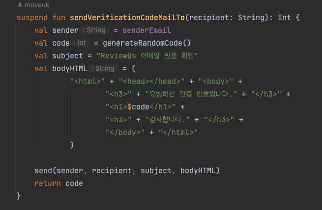 val subject = "ReviewUs 이메일 인증 확인"