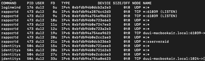 $ lsof -i