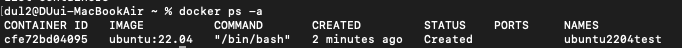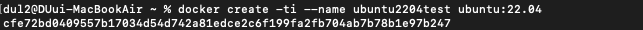 docker create –ti --name ubuntu2204test ubuntu:22.04