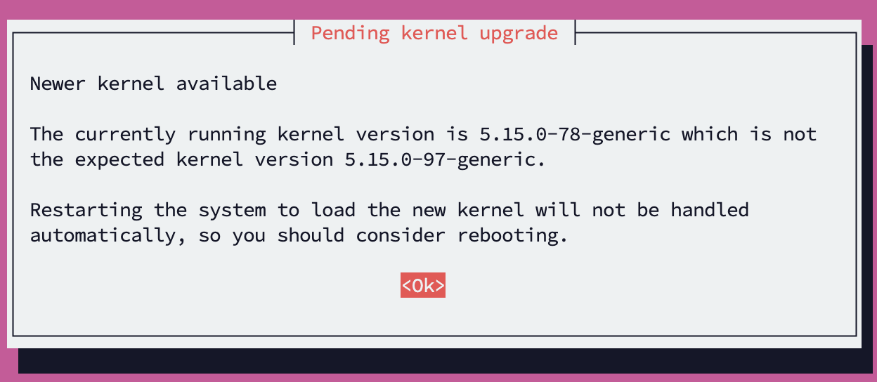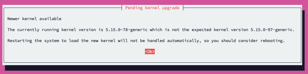-> 이 GPG키를 추가할 때 첫 Ubuntu를 세팅하고 진행한다면 다음과 같은 경고가 뜬다. Ubuntu 설치시 존재했던 키가 오래된 것이라 경고를 주는 듯하다. 아마 진행하는데는 문제 없으므로 진행하면된다.