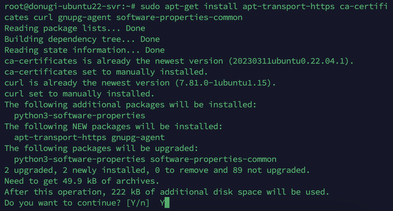 Y를 눌러 진행(앞에 띄어쓰기 생기면 abort로 설치 안됨.)