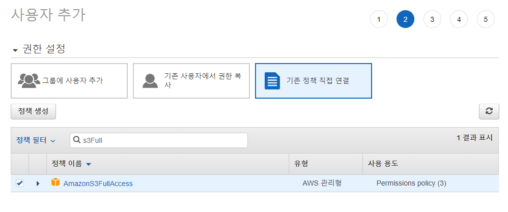 S3 접근 정책과 CodeDeploy 접근 정책을 모두 부여합니다. 현재는 함께 정책을 부여하지만 실제 회사에서는 권한도 S3와 CodeDeploy를 분리하여 사용한다고 합니다.