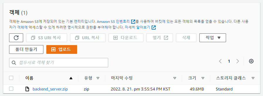 간단한 오류해결하여 S3 업로드 성공.